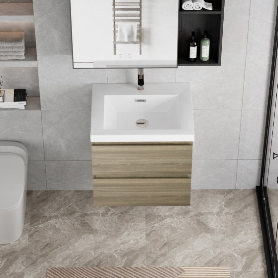 Clean and Functional: Enhance your bathroom with this space-saving, wall-mounted vanity to neatly organize cosmetics and other essentials. Its modern, minimalist design enhances the aesthetics of your space while maximizing functionality.