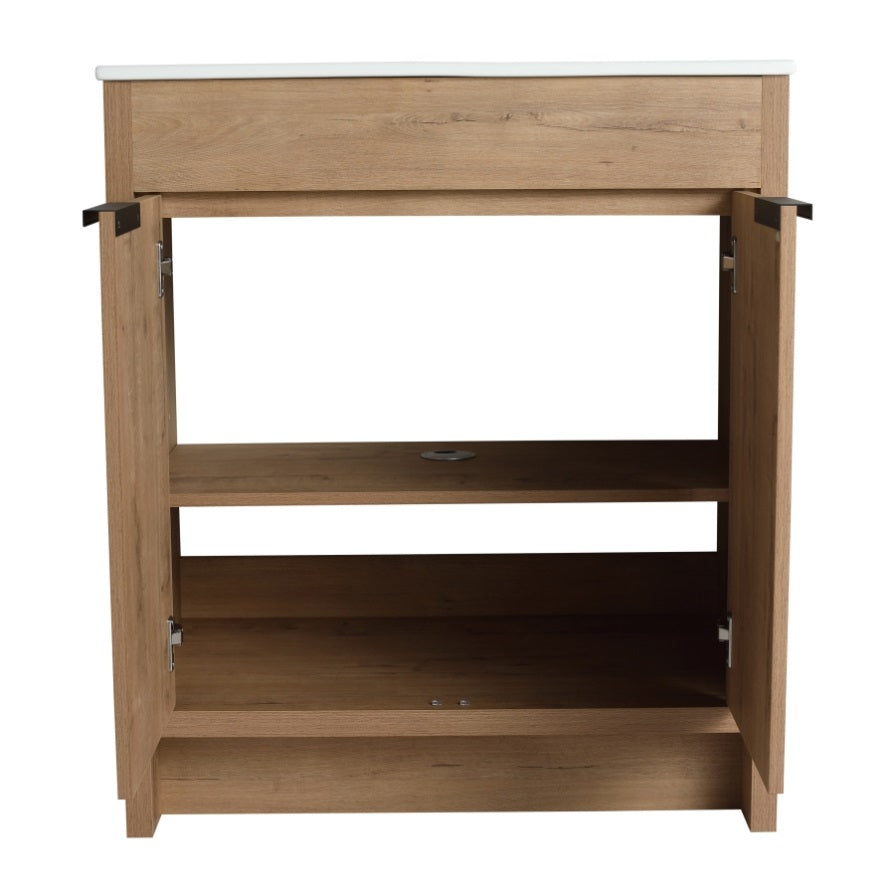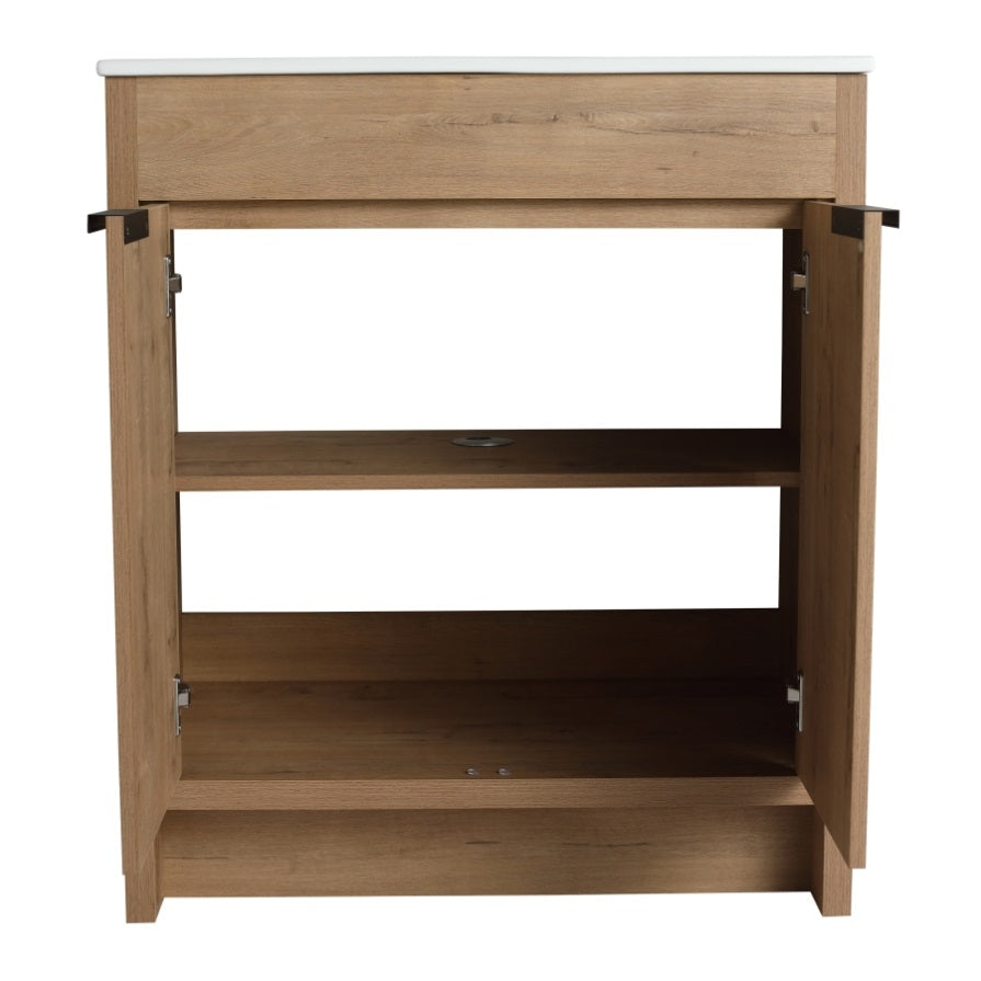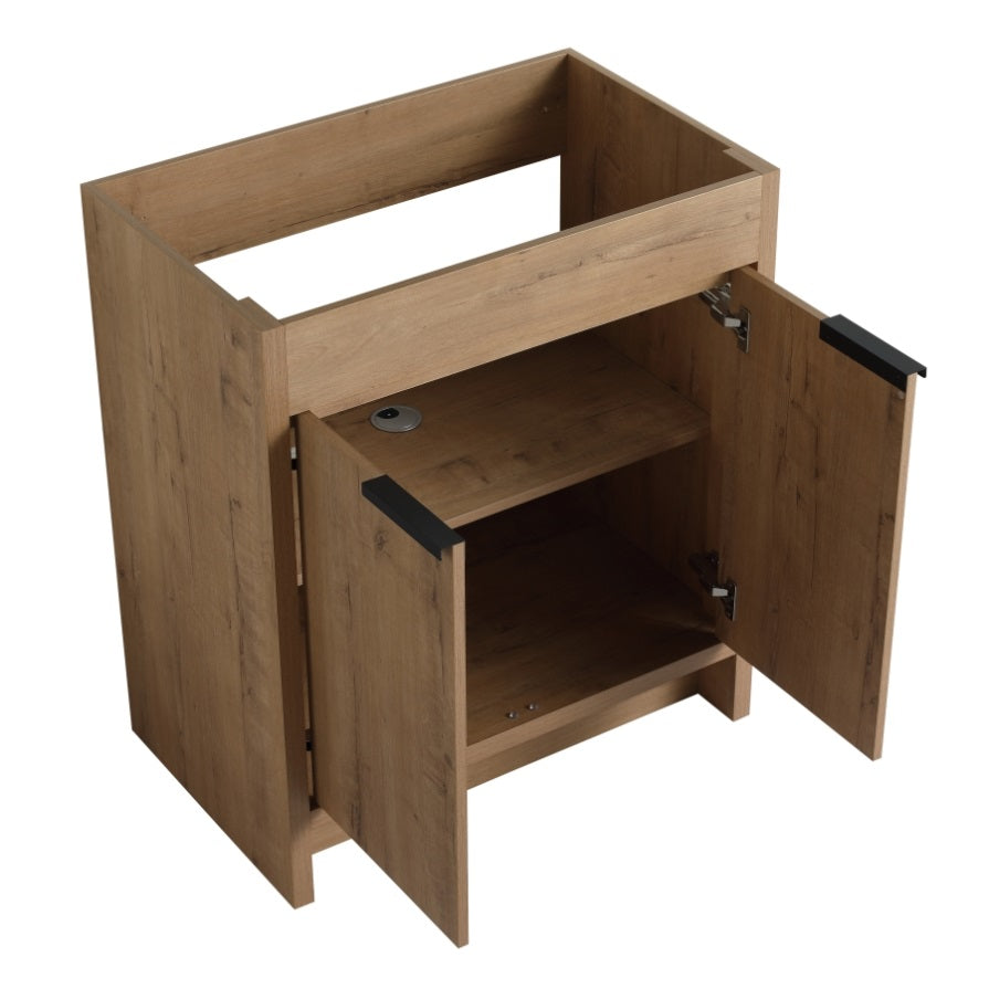 Vanity Base is made of High Quality "Eco-Friendly" Plywood that surface material used "Scratch & Water-Resistant" Melamine, which is designed to not only withstand threats of moisture and humidity but also easy to clean and maintain.