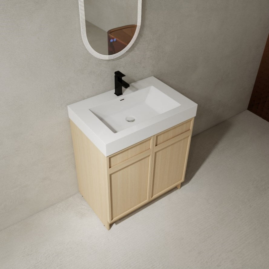 30" Freestanding Bathroom Vanity with White Resin Sink & 2 Soft-Close Cabinet Doors W999P239160