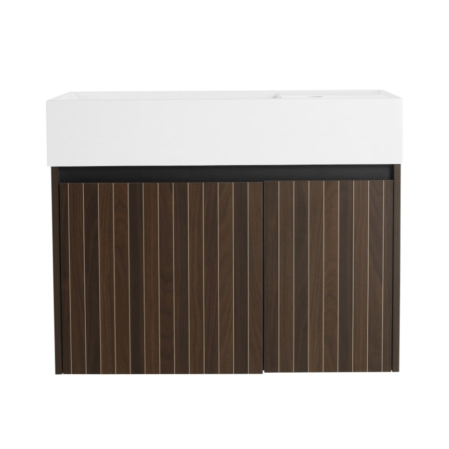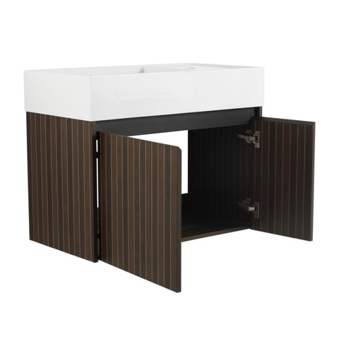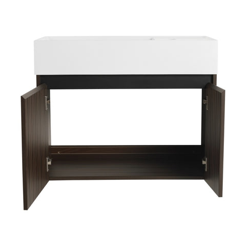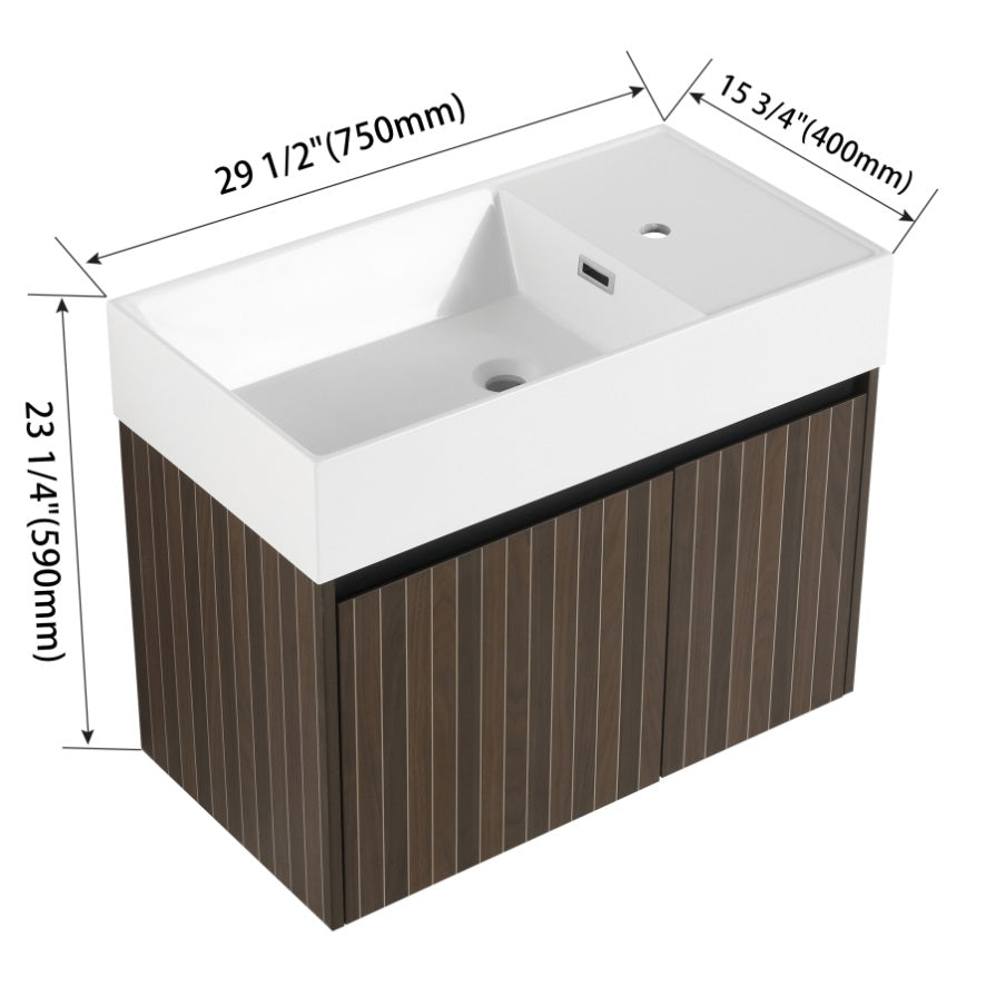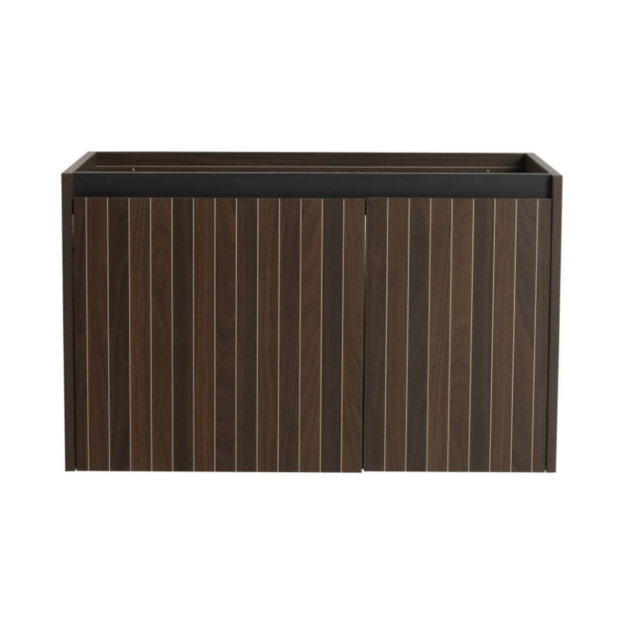 This wall-mounted bathroom vanity stands out with its unique Silver-Brown Stripe design, where the dark wooden texture beautifully contrasts against the white background, creating a stylish yet cozy ambiance in your bathroom. The double-door design is not only visually appealing but also significantly enhances storage capacity, allowing you to effortlessly organize all your bathroom essentials and maintain a tidy and organized space. Thoughtfully designed interiors offer ample storage room to cater to your diverse storage needs.