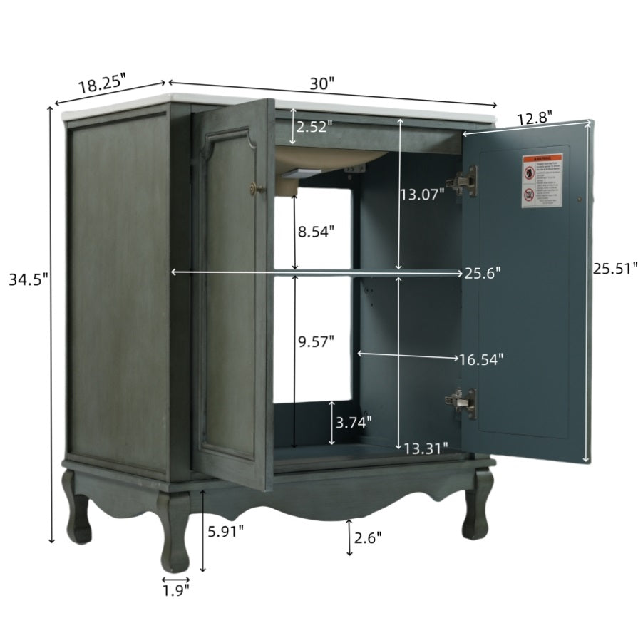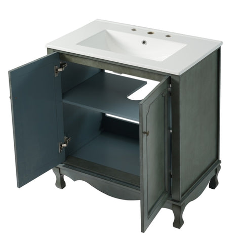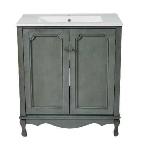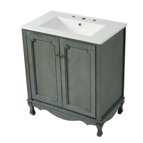 30" Vintage Bathroom Vanity with Rectangle Ceramic Sink, Bathroom Vanity Cabinet with Antique N817P245316B