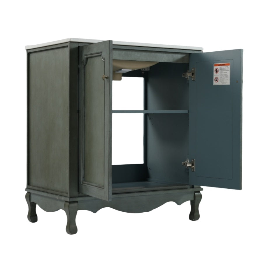 Elegant Vintage Design with a Timeless Appeal: Bring a touch of classic charm to your bathroom with this 30-inch vintage bathroom vanity, featuring an antique blue finish that exudes sophistication and character. The beautifully crafted panel-style doors with antique handles add a touch of retro elegance, making this vanity a perfect fit for traditional, farmhouse, or eclectic bathroom styles.