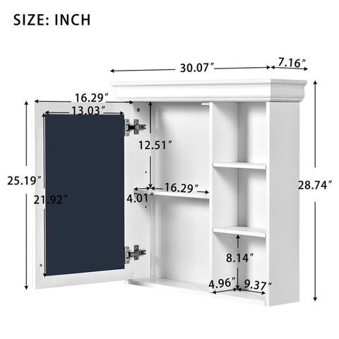 30'' x 28'' Bathroom Medicine Cabinet with Mirror, Wall Mounted Mirror Cabinet with Storage N710P209425K