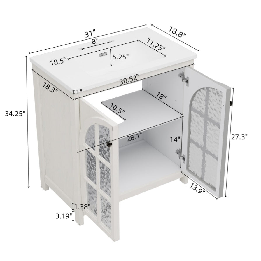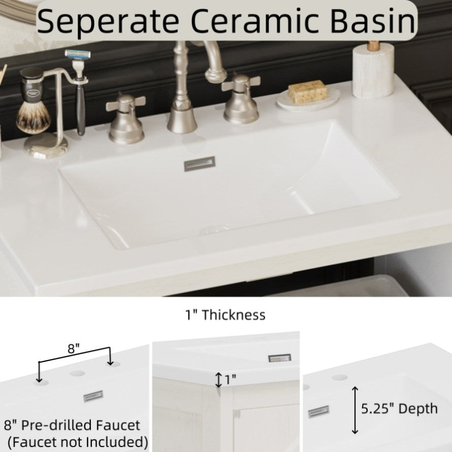 Elegant Vintage Design with a Timeless Appeal: Bring a touch of classic charm to your bathroom with this 31-inch vintage bathroom vanity, featuring an antique white finish that exudes sophistication and character.