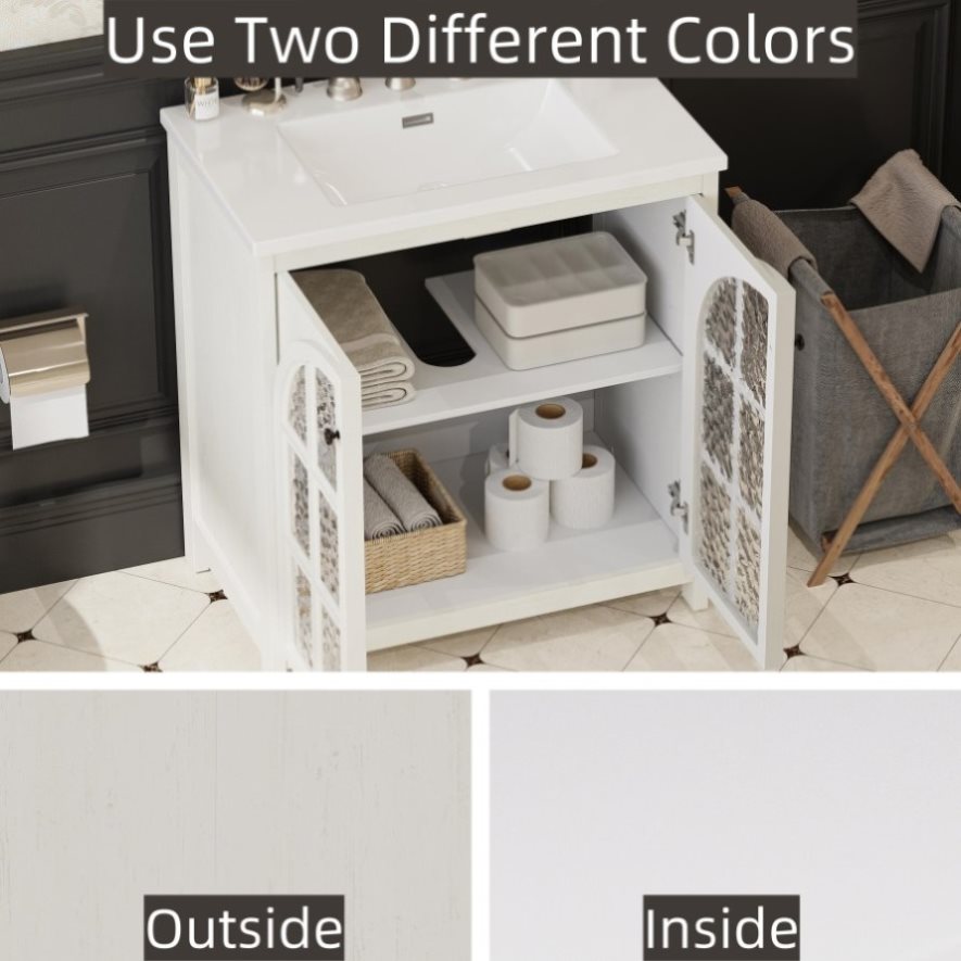 Spacious Storage with Adjustable Shelves: Designed to keep your bathroom organized and clutter-free, this vanity features two soft-close doors that open to reveal adjustable shelves, allowing you to customize the storage space to fit your needs. Whether you need space for towels, toiletries, or cleaning supplies, the versatile storage options ensure everything stays neatly arranged.