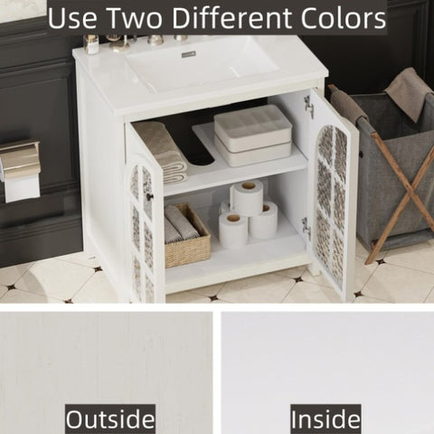 31" Farmhouse Bathroom Vanity Ceramic Sink, Faux Aged Finish, Vintage Rustic Bathroom Cabinet N817P299512W