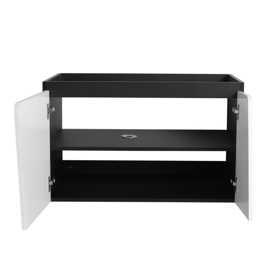 This wall mounted dressing table features a double door design.A layer of plywood has been added to the periphery, not only adding a sense of fashion, but also reinforcing the cabinet, extending its service life.