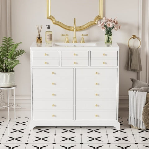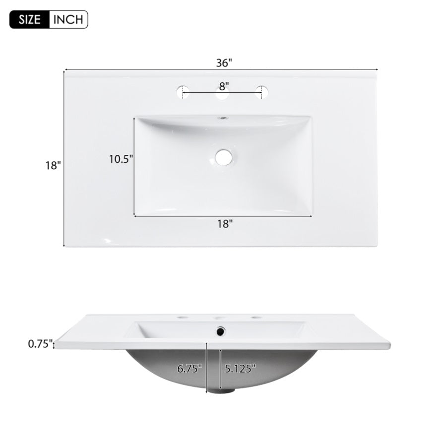 36'' Bathroom Vanity with Ceramic Sink Combo, Solid Wood Frame Bathroom Storage Cabinet, N710P195628K