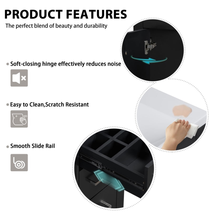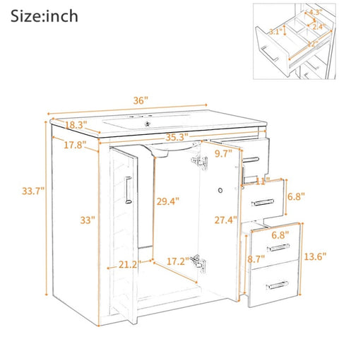 [ Multi-Purpose Cabinet & Concealed Storage ] Are you looking for stylish and functional storage solutions for your bathroom Our bathroom vanity provide ample space for all your toiletries and bathroom essentials. The combination of the cabinet body and the drawer perfectly stores all kinds of bathroom products and keeps the necessities away from water stains and dust. Soft-close doors and drawer fronts feature a water-resistant paint finish for durability.
