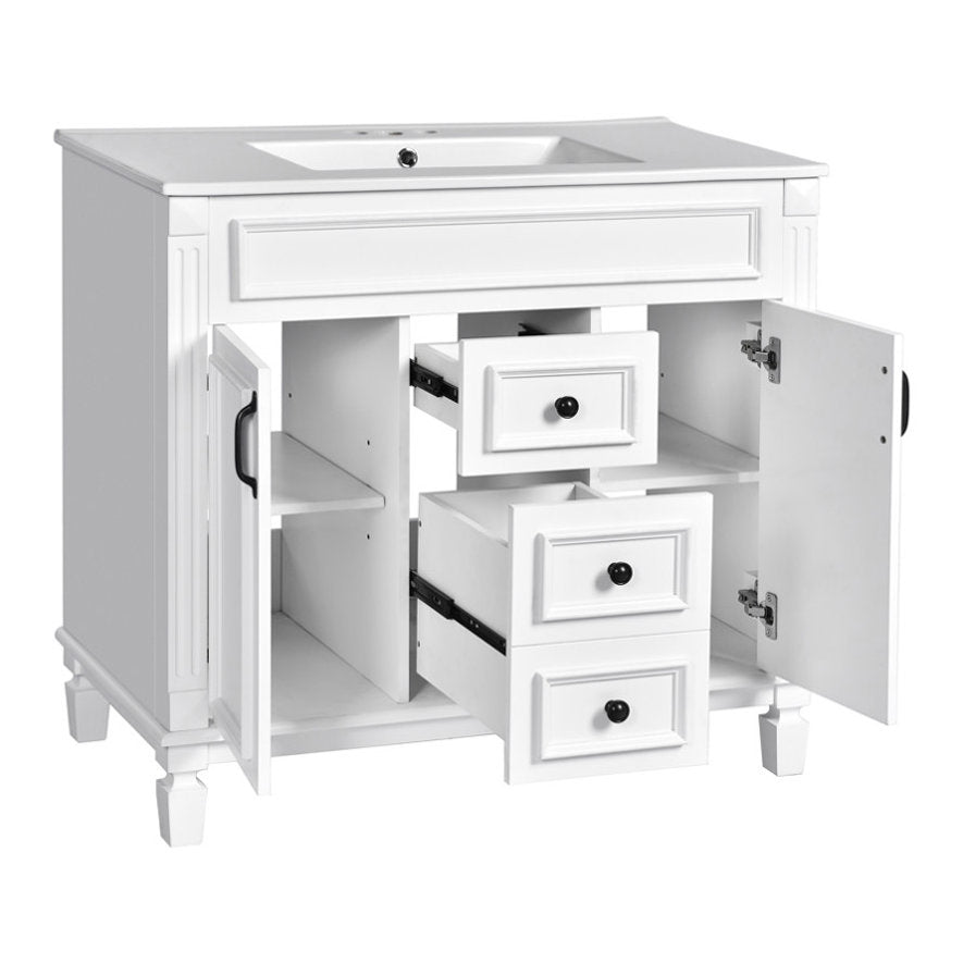 [ Multi-Purpose Cabinet & Concealed Storage ] Are you looking for stylish and functional storage solutions for your bathroom Our bathroom vanity provide ample space for all your toiletries and bathroom essentials. The combination of the cabinet body and the drawer perfectly stores all kinds of bathroom products and keeps the necessities away from water stains and dust. Soft-close doors and drawer fronts feature a water-resistant paint finish for durability.