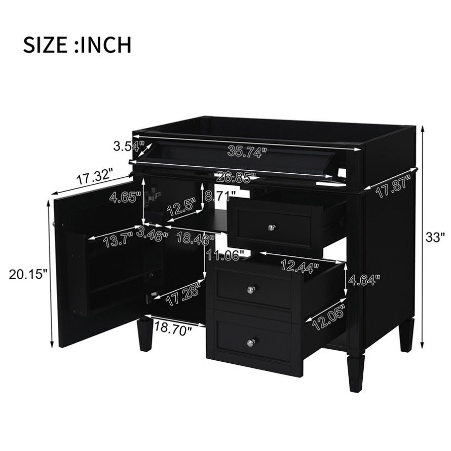36'' Bathroom Vanity without Top Sink, Modern Bathroom Storage Cabinet with 2 Drawers and a Tip-out N710P186084B
