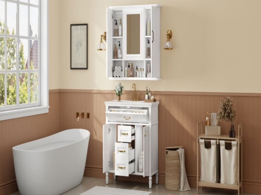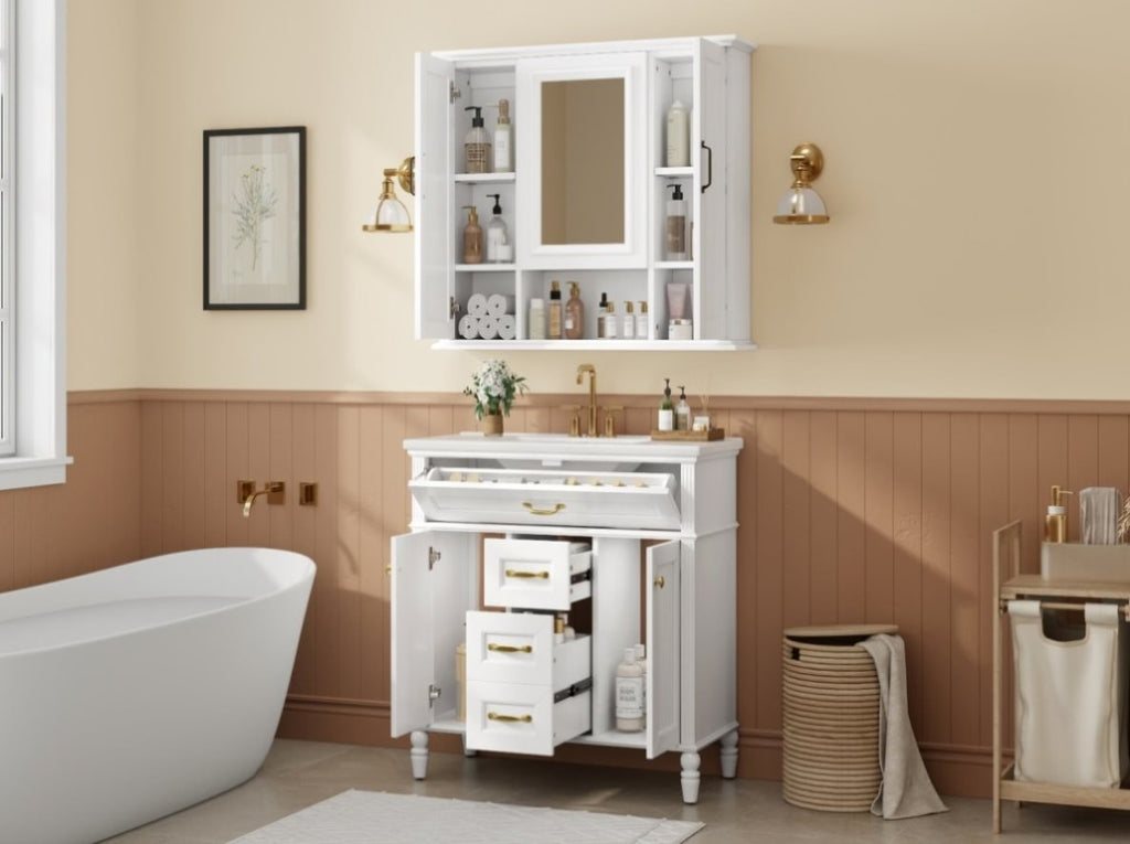 Ample Storage Capacity: With a total weight capacity of 75 lbs, this cabinet offers solid support for daily bathroom essentials.