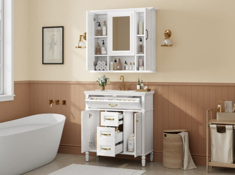 36'' Medicine Cabinet, Wall Mounted Bathroom Storage Cabinet, Modern Bathroom Wall Cabinet with N725P346902K