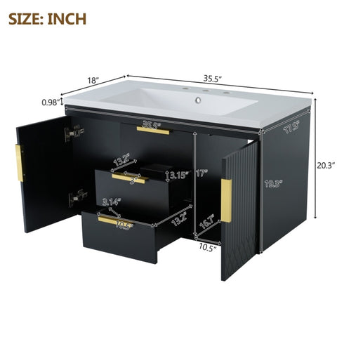 36'' Wall Mounted Bathroom Vanity with Resin Sink, Floating Bathroom Storage Cabinet with 2 Drawers, N710P253035B