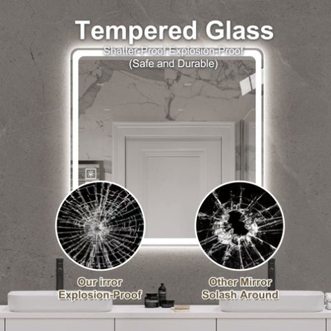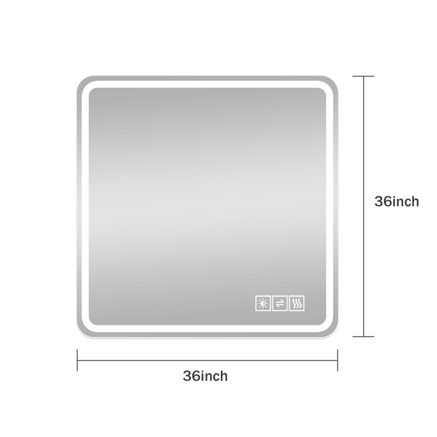 36*36in LED Bathroom Mirror, Anti-Explosion Glass, Rust-Resistant, Anti-Fog Features, Tri-Color W2709P243340