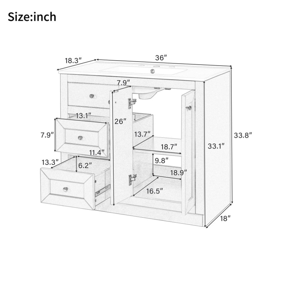 36inch Bathroom Vanity with Ceramic Sink, Bathroom Storage Cabinet with 2 Drawers