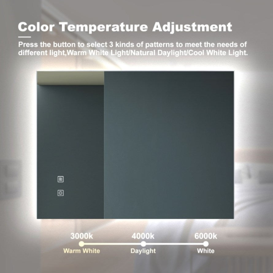 [Unique design]: The mirror power switch and anti-fog switch are all-in-one design. This built in anti-fogging function means no need to constantly treat your mirrors with fog free spray.The anti-fog function will be turned off automatically in one hour,safe and energy-saving.