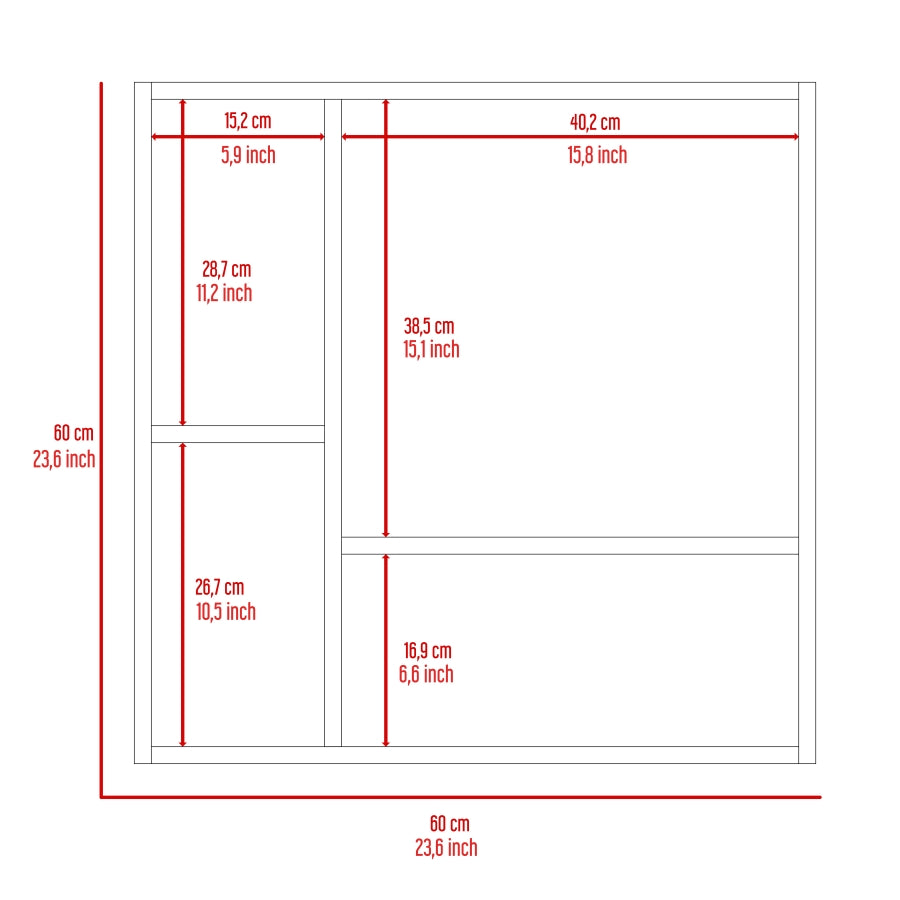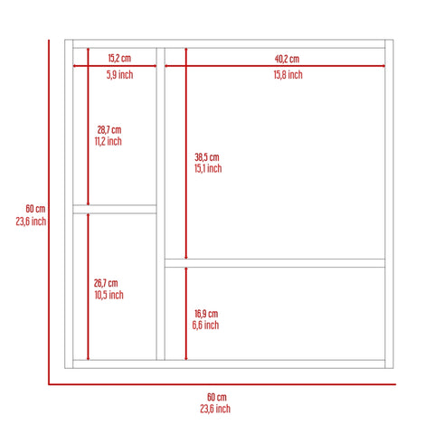 Dimensions 23.6 inches high x 23.6 inches wide x 5.8 inches deep
