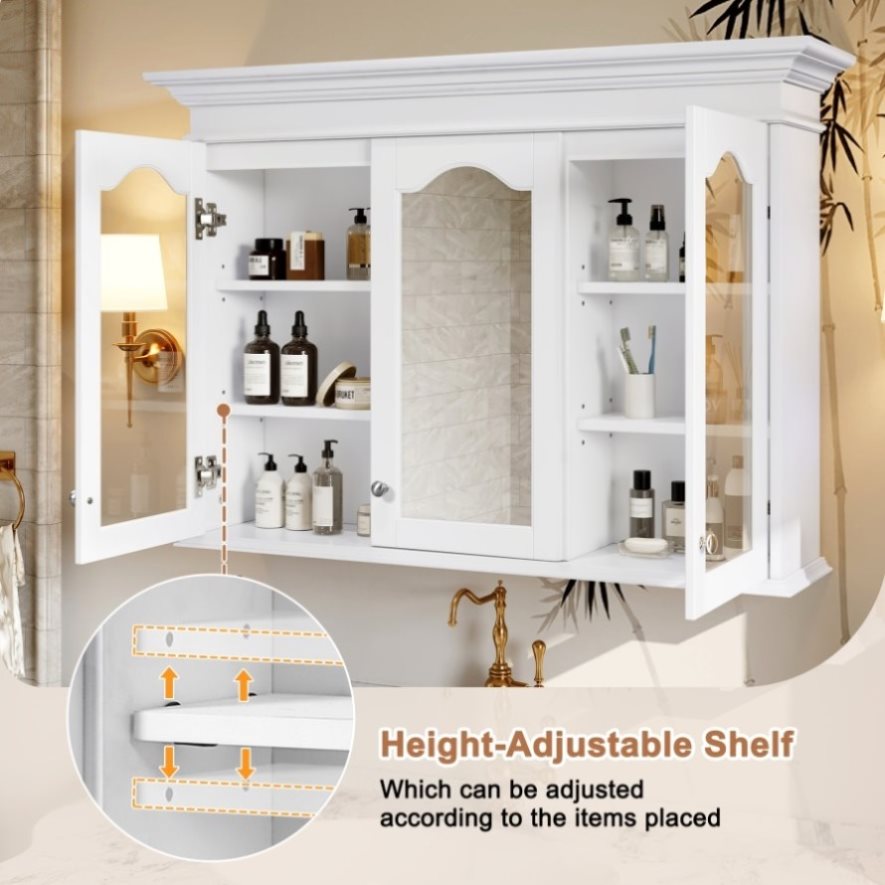 Featuring 6 removable shelves, this cabinet allows you to customize the storage layout to fit items of any size, from tall bottles to small toiletries. The wall-mounted design is ideal for compact bathrooms, freeing up valuable floor space while keeping your bathroom neat and clutter-free.