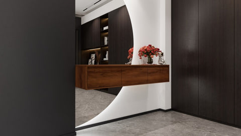 Our bathroom dresser adopts a wall-mounted design, perfectly blending modern minimalist style with natural beauty, adding a touch of freshness and elegance to your bathroom space. The main color is Brown Ebony, featuring a soft hue and natural texture that easily blends into modern home decors, showcasing taste and elegance.