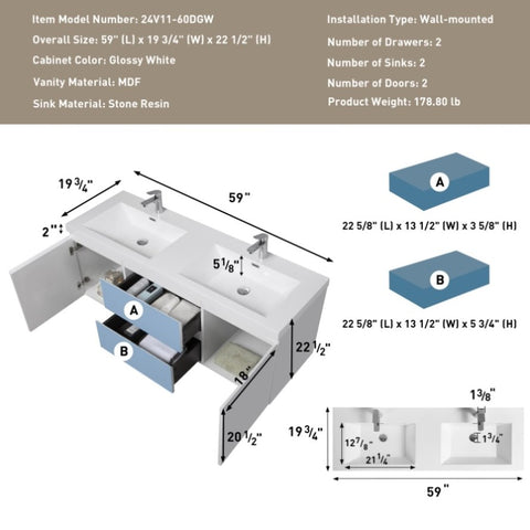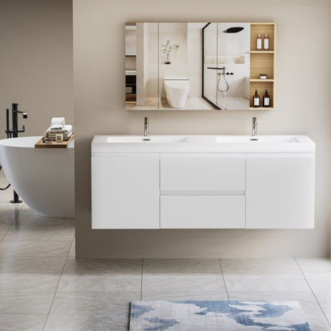 60" Floating Bathroom Vanity with Sink, Modern Wall-Mounted Bathroom Storage Vanity Cabinet with W1573P152689