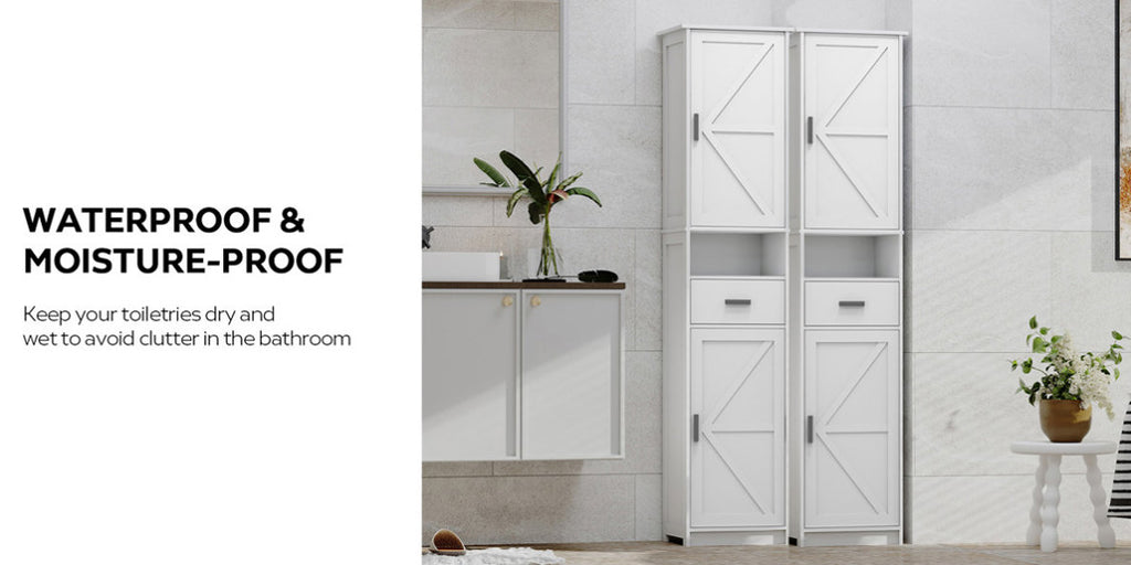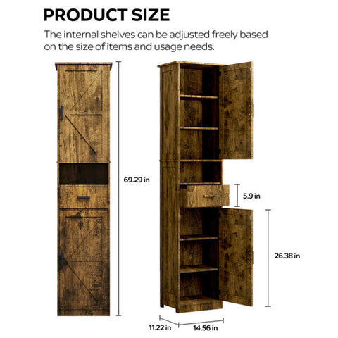 69" H Tall Bathroom Storage Cabinet with 2 Barn Doors and 1 Drawer, Narrow Storage Unit, Adjustable W2386P207759