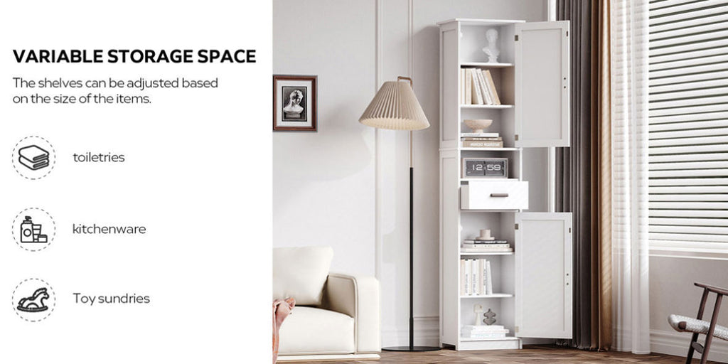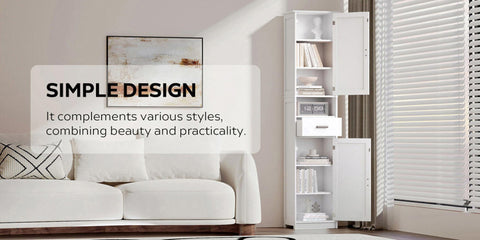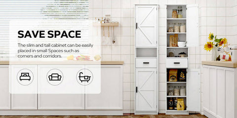 Stable and DurableThis narrow tall cabinet is made of high-quality particleboard, giving you long-lasting durability and extraordinary experience. Meanwhile, 4 solid wood legs on the bottom and an anti-tip kit on the back add extra stability