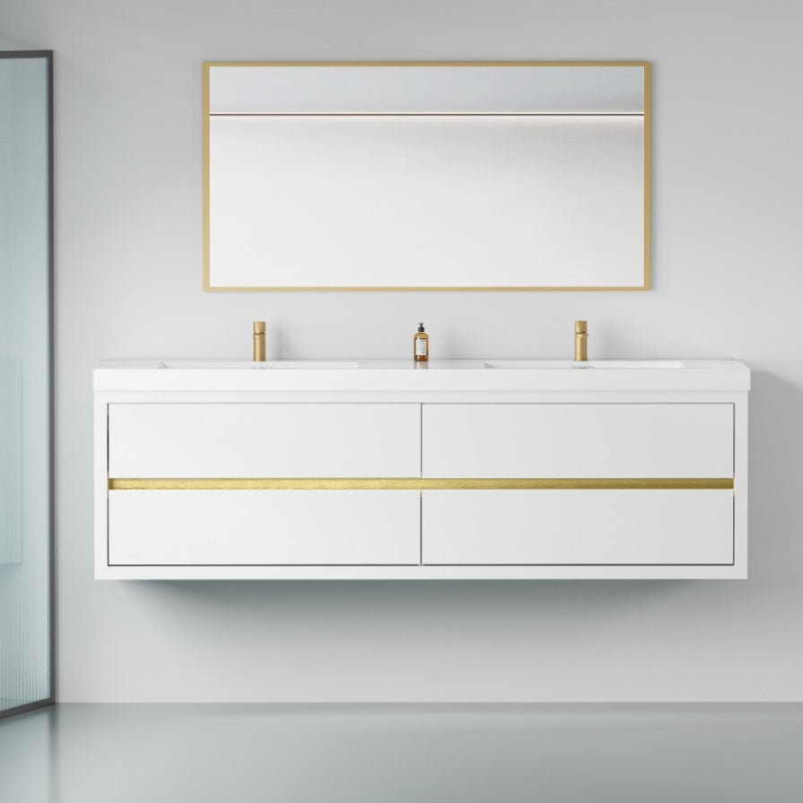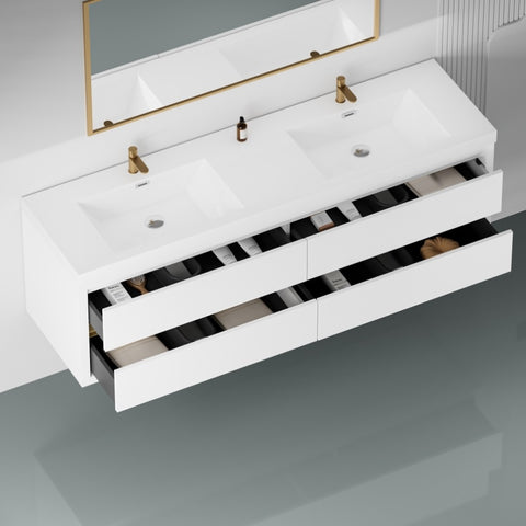 72" Wall-Mounted Bathroom Vanity with Double Sinks, Floating Bathroom Storage Cabinet with Stone W1573P211181