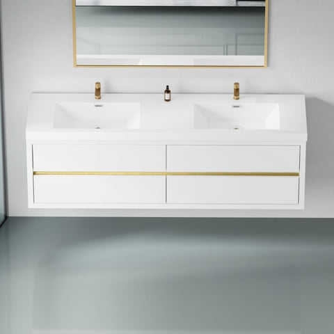Premium Stone Resin Countertop: It features a glossy white, one-piece sink made of high-quality materials that are easy to clean, resist yellowing, and have low water absorption.