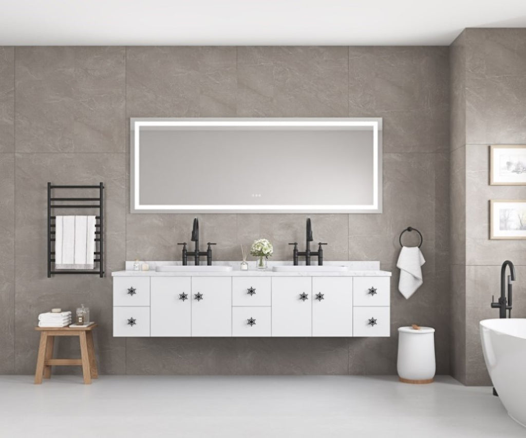 The anti-fog function of the bathroom mirror can quickly remove water vapor on the mirror surface, and no need to wipe the mirror after bathing, and can also maintain a clear view.