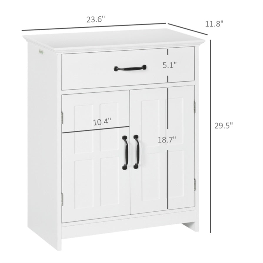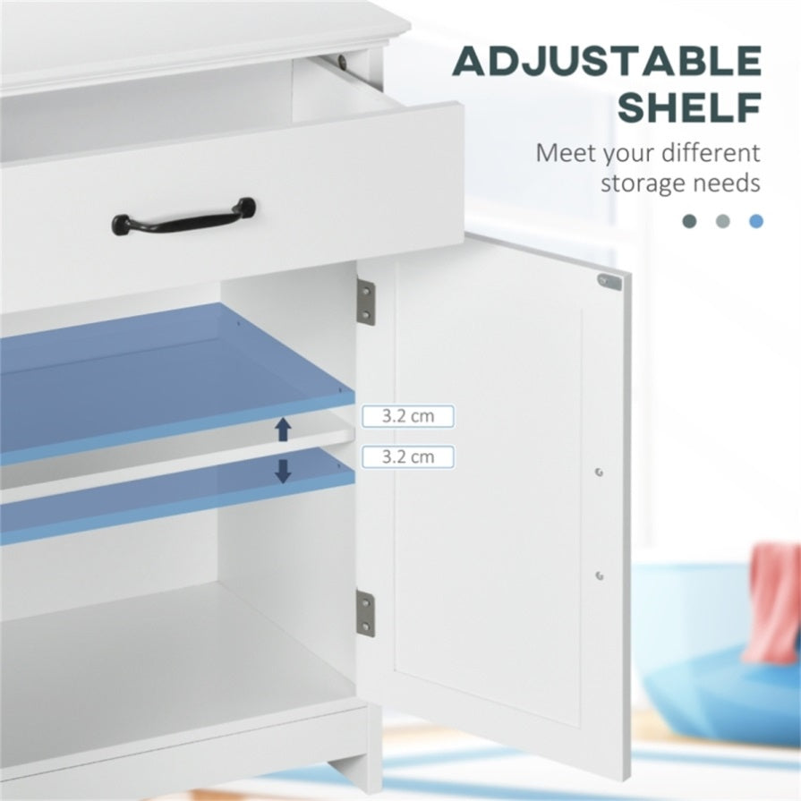 • - A drawer and enclosed cupboard neatly arrange your collection of towels, linen, and other bathroom essentials