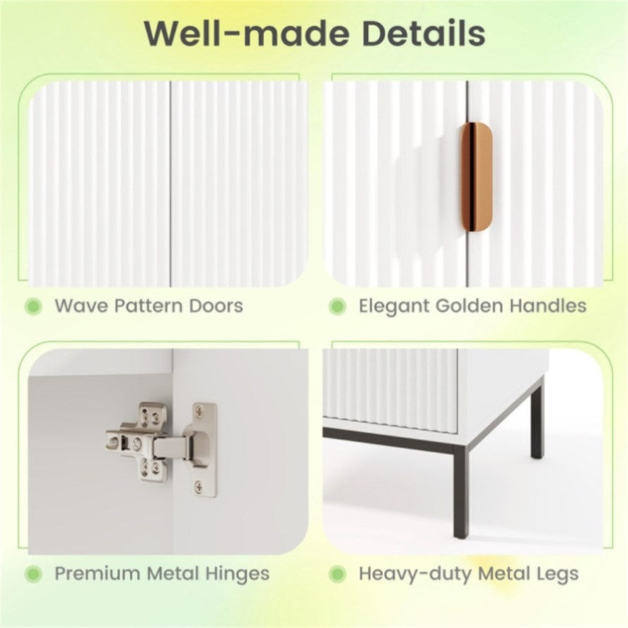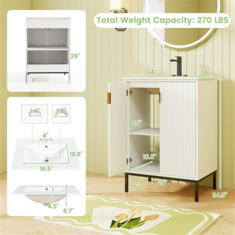 ● Modern Design: Featuring unique wave pattern doors and elegant golden handles, this 24-inch modern bathroom vanity with sink combo set is not only a practical storage solution, but also a focal point in your bathroom.