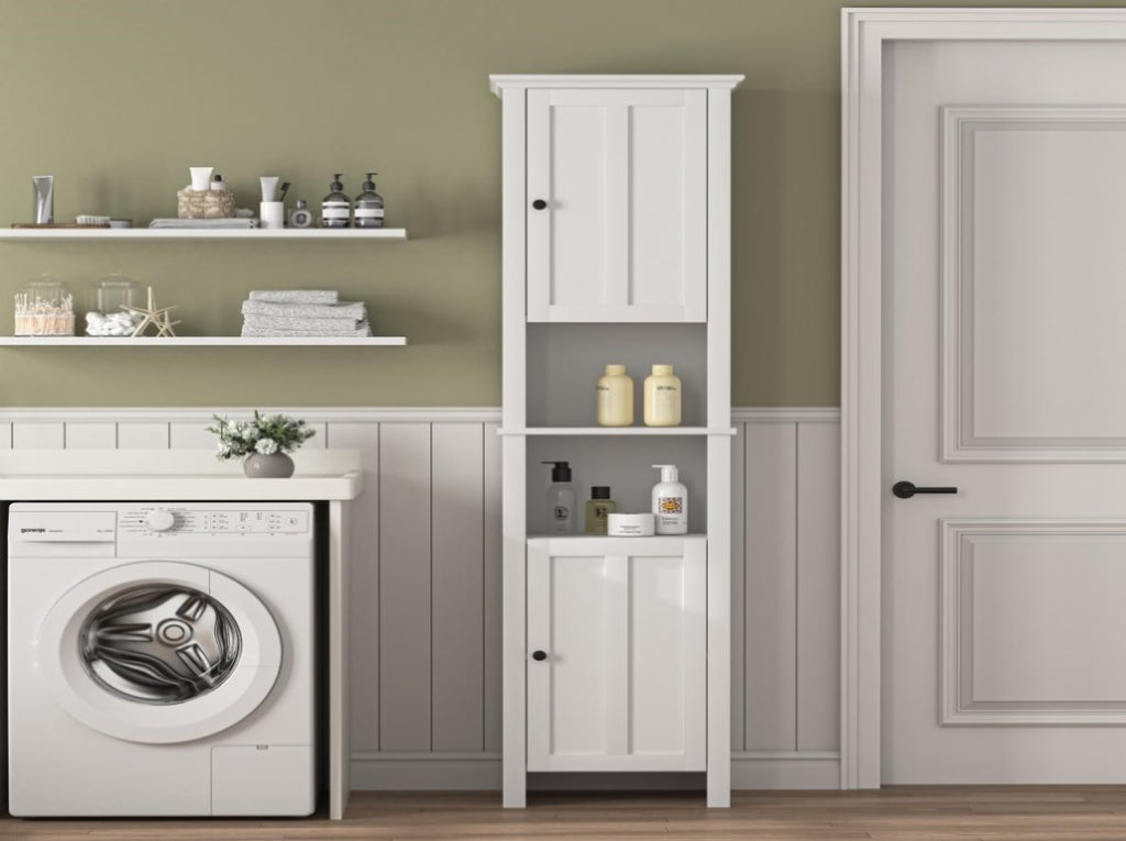 Freestanding Multifunctional Cabinet: Bathroom linen cabinet size: 15.75W*11.8D*67H, compared to the bulky size of a spacious cabinet, choosing a tall and thin cabinet can make your room appear larger, flexible, and convenient, making it more roles in the family. A narrow storage cabinet could as a living room cabinet for personalized customized space, a laundry cabinet for cleaning products a kitchen cabinet storage place for dishes and seasoning.