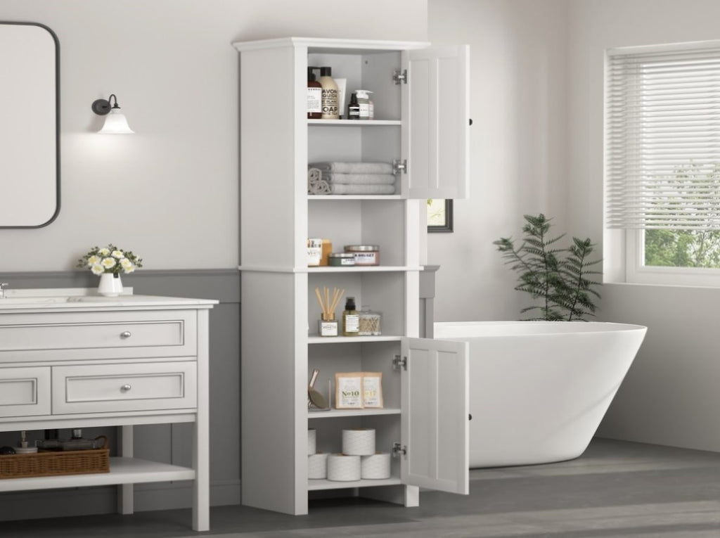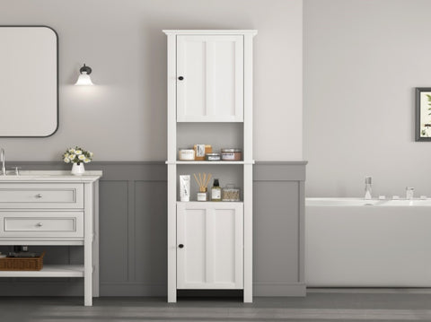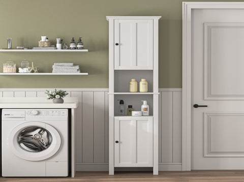Use Every Inch For Storage: Tall bathroom cabinets freestanding design 2 doors with adjustable shelves, which simultaneously meet the storage needs and sizes of items in the high and low areas. The slim bathroom storage cabinet has 2 accessible open storage space, without the need to bend down, allowing the countertop to bid farewell to dirt and clutter. A reasonable and orderly storage design will maximize your vertical storage area.
