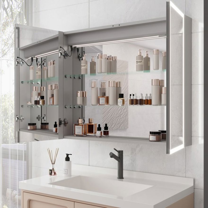 There are three touch switches for this cabinet, which control the main light, the anti-fog function respectively, the brightness adjustment and color temperature adjustment of the lighting.