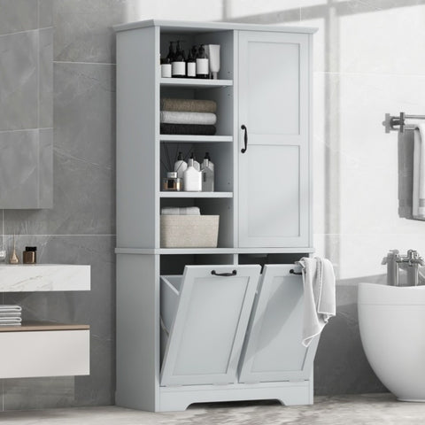 Bathroom Storage Cabinet with Doors and Drawers, Tilt-Out Laundry Hamper, Multiple Storage Space, 36301140