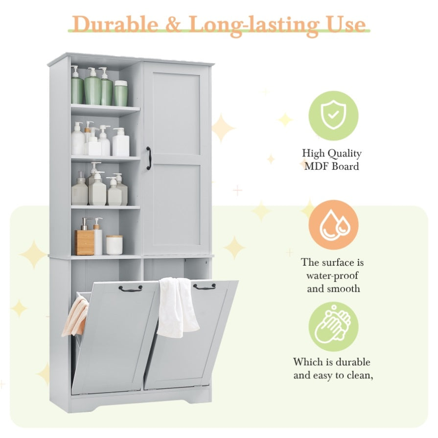 • Wide Application: Stylish and functional, featuring a sleek and contemporary design, this hamper cabinet seamlessly blends with any decor style. Its functionality and versatility make it an ideal addition to bathrooms or laundry rooms.