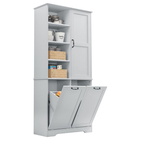 1. Tall Storage Cabinet 2. High-quality MDF Board 3. Cabinet with Door & Two Tilt-Out Drawers & Storage Rack 4. Applicable for Different Rooms Details 1. Functional Storage Rack 2. Three Adjustable Shelves 3. Metal Black Handles 4. Open shelve 5. Anti-tipping Device