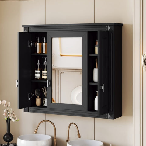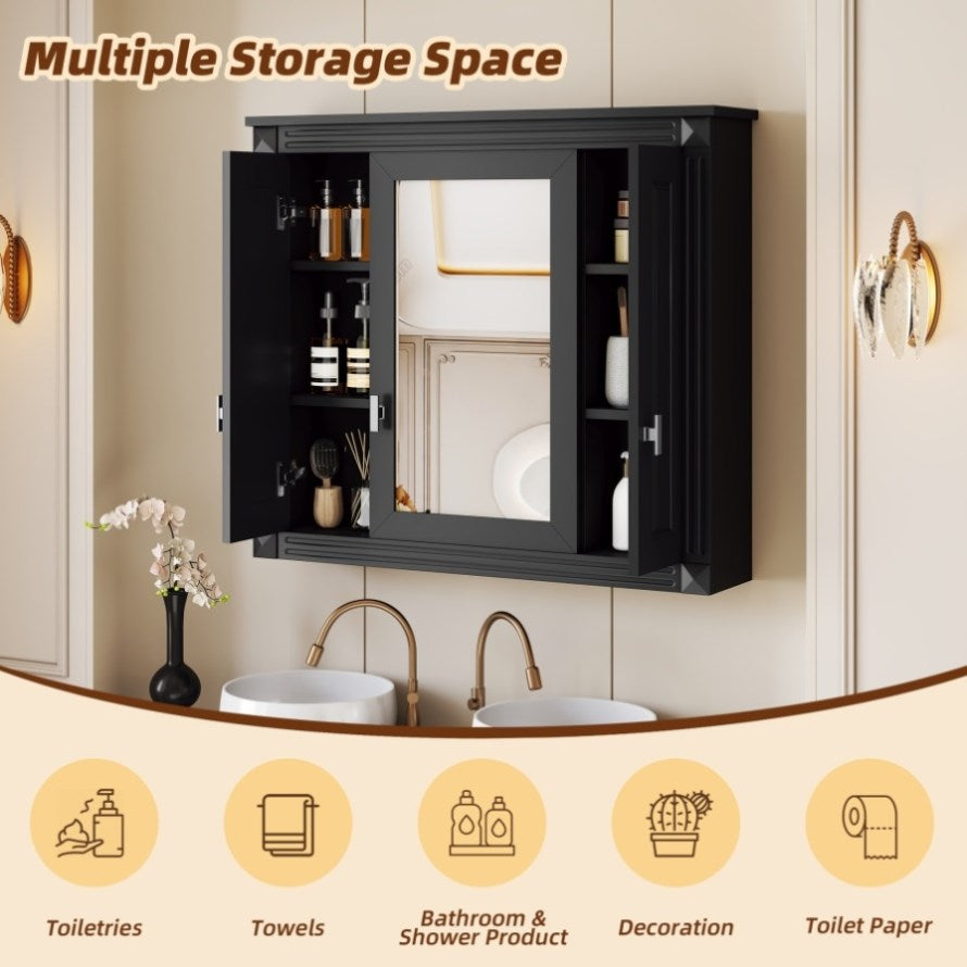 This wall-mounted mirror cabinet combines high-quality MDF panels and high-definition mirrors to create a sturdy and beautiful home storage solution. The exquisite mirror provides clear reflections, making your daily grooming more convenient. The unique design combines hidden storage and open shelves to meet different storage needs. Three large storage cabinets can easily hide personal items and keep the space neat and organized; three layers of adjustable shelves provide flexible storage space for various items to adapt to your changing needs. Whether in the bathroom, bedroom or living room, this mirror cabinet can be perfectly integrated, adding fashion and practicality to your home.