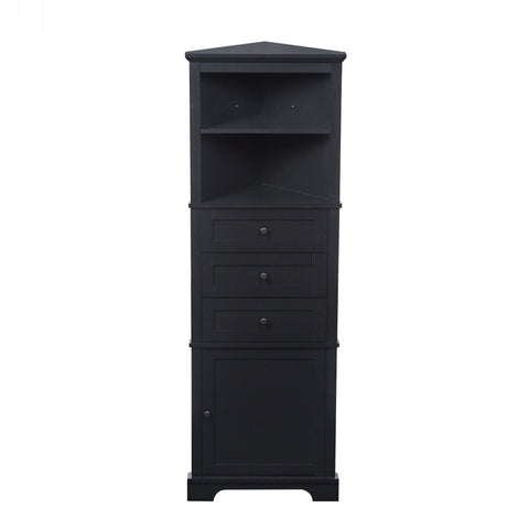 Black Triangle Tall Cabinet with 3 Drawers and Adjustable Shelves for Bathroom, Kitchen or Living 02825158