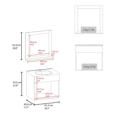 23.62 x 44.96 x 53.34 (W x D/L x H) cm