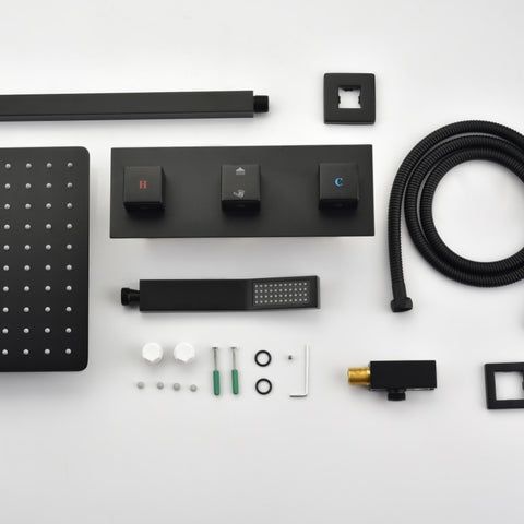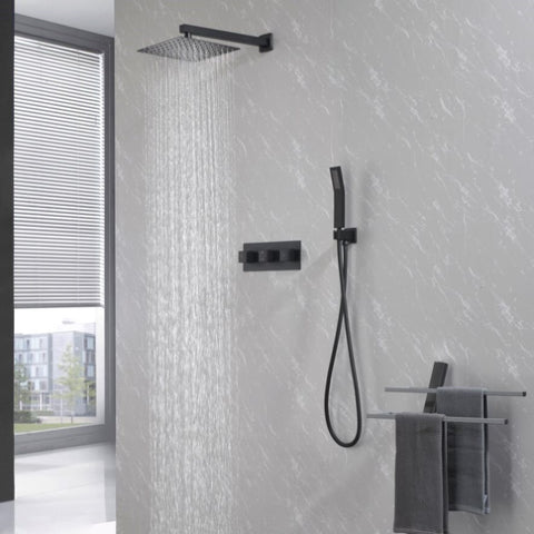 Brass Matte Black Shower Faucet Set Shower System 10 Inch Rainfall Shower Head with Handheld Sprayer 76070981