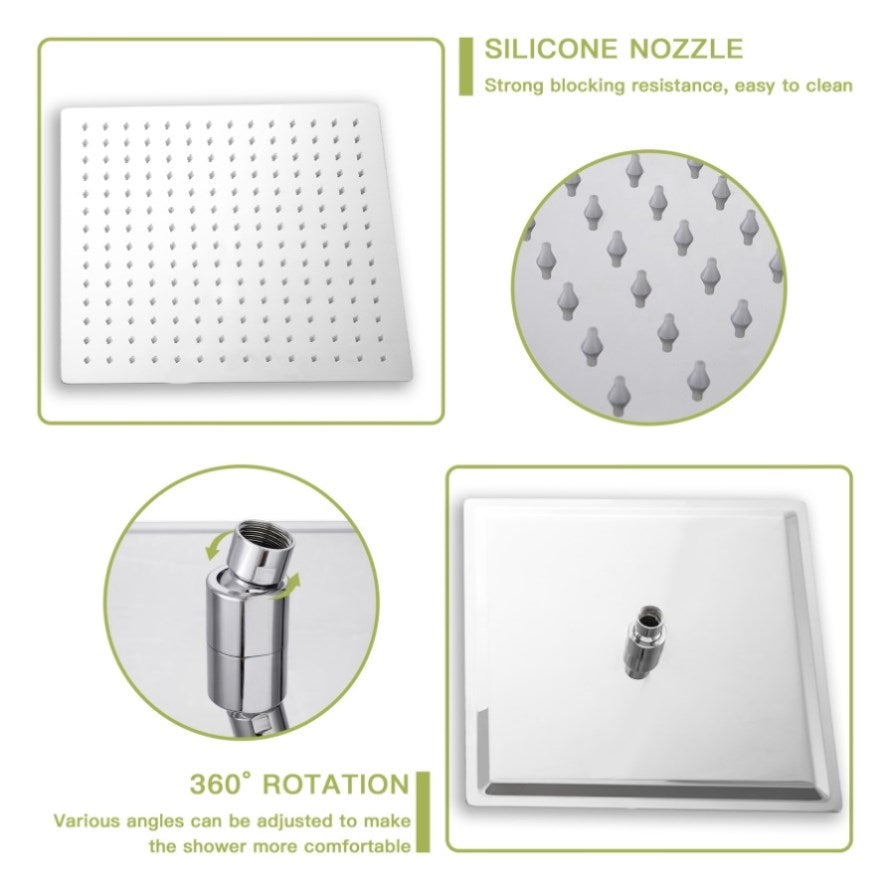 {Rainfall Shower Head}Our ultra-thin overhead rainfall shower head offers extensive coverage, providing a soothing downpour shower experience with 360° adjustability.