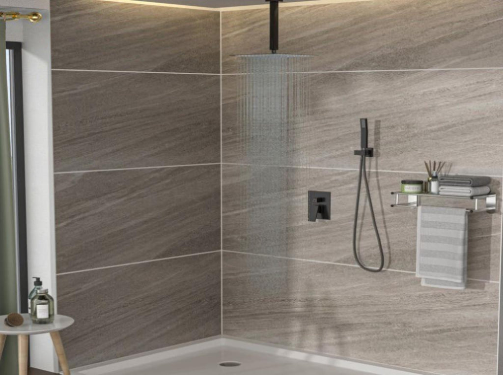 {Rainfall Shower Head}Our ultra-thin overhead rainfall shower head offers extensive coverage, providing a soothing downpour shower experience with 360° adjustability.