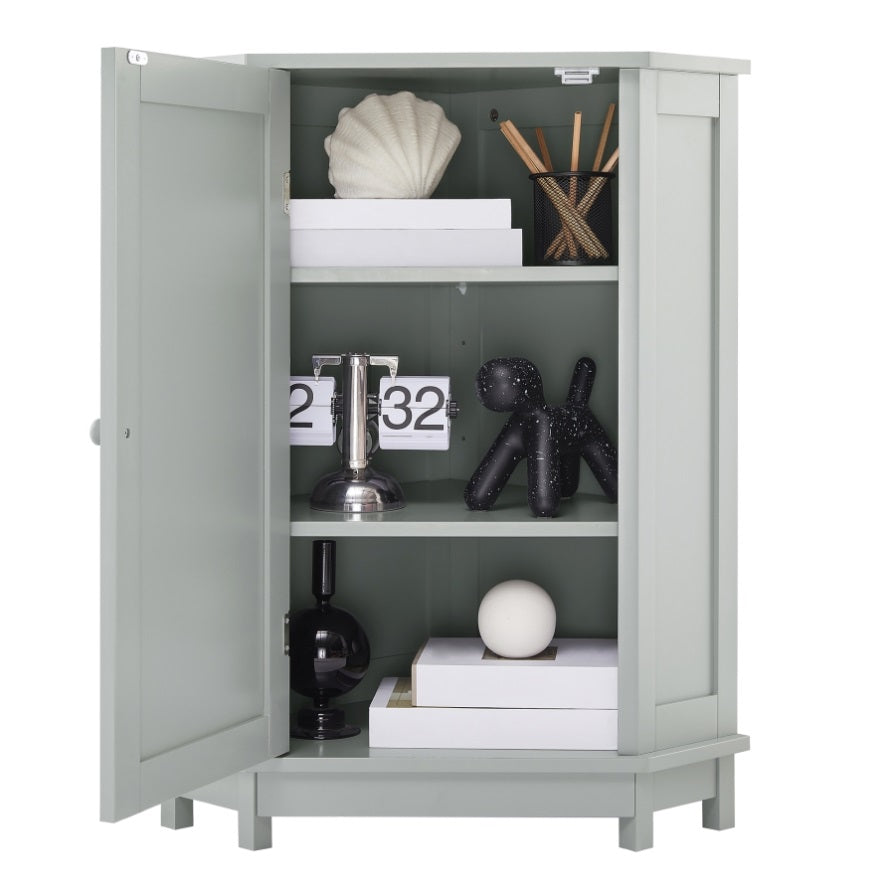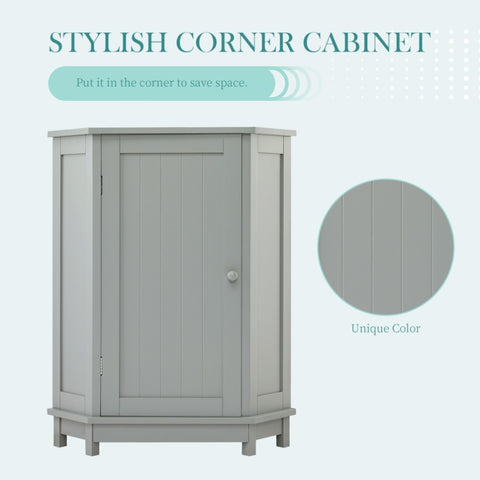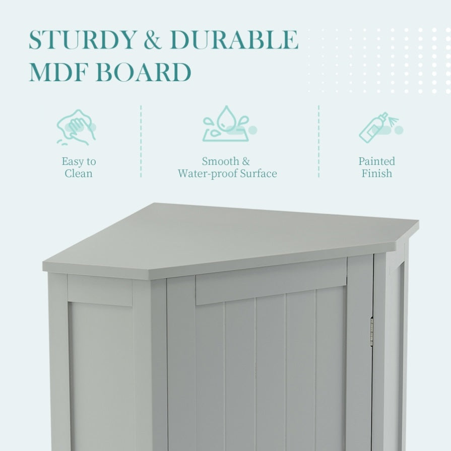 Grey Bathroom Cabinet Triangle Corner Storage Cabinet with Adjustable Shelf Modern Style MDF Board N725P172615E