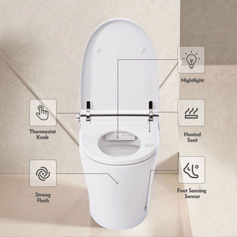 Soft Night Light: The smart toilet including night light, Knob ambient light,providing convenient visibility during nighttime bathroom visits. Prevent midnight accidents and make your trips to toilet safer for your family.