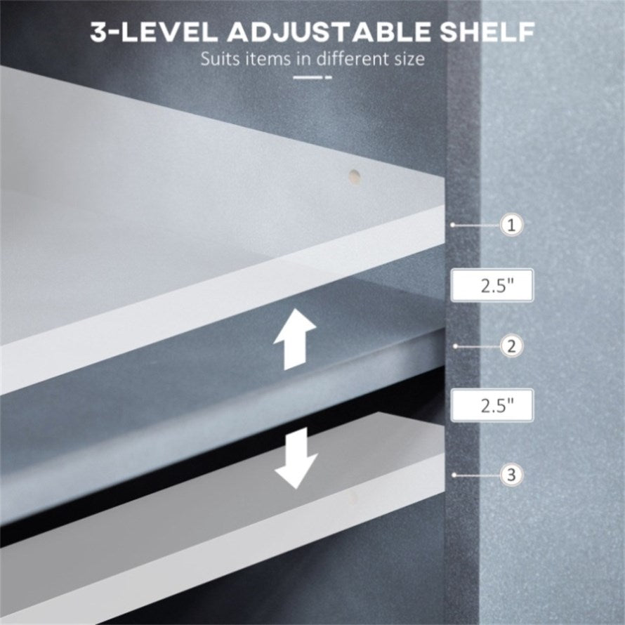 • - 2-tier cabinets feature shelving that adjusts in case of taller items