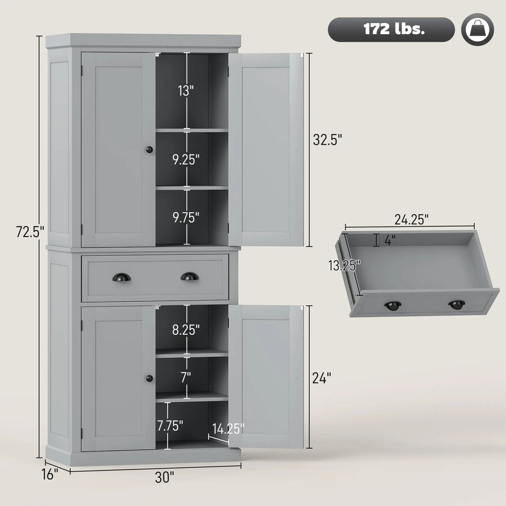 • - Overall Dimensions: 30" W x 16" D x 72.5" H