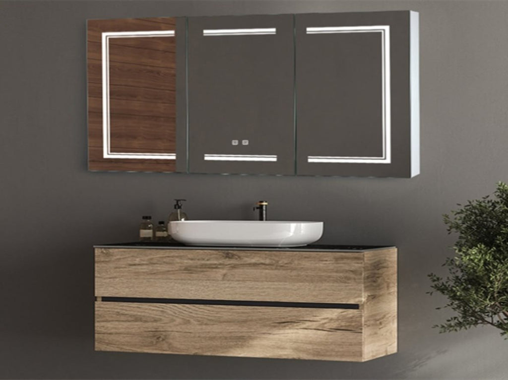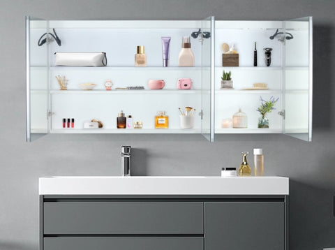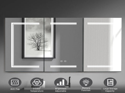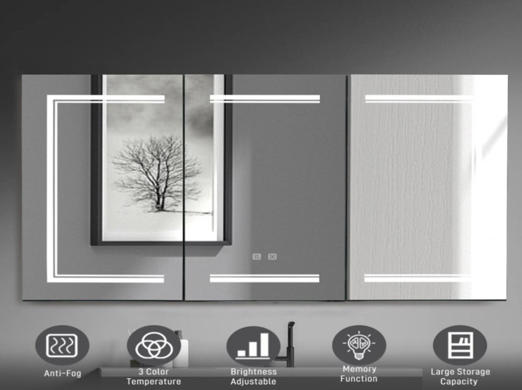 LED Bathroom Wall Cabinet, 3 Door Bathroom Mirror Cabinet, white 13234989