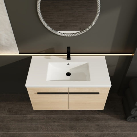 LEVISTAR Oak 36 Inch Bathroom Vanity with resin Countertop Sink, 2 Doors Bathroom Cabinet Set W1972P165045